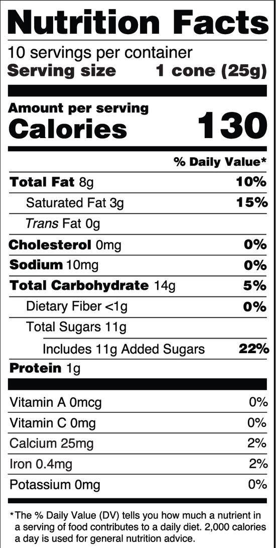 • Delicious crispy cone filled with yummy chocolate cream & topped with candy sprinkles